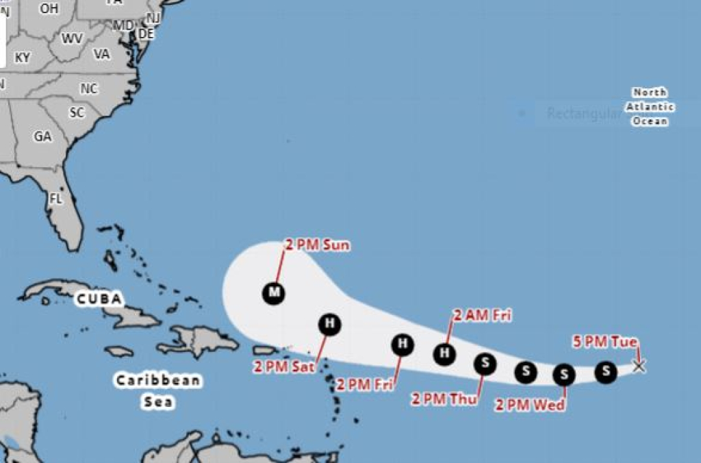 agosto 13, 2025 agosto 13, 2025Categories HuracanesEl camino de la tormenta tropical erin cambia, pero se fortalece y aún se pronostica que se convierte en un gran huracán, dice NHC