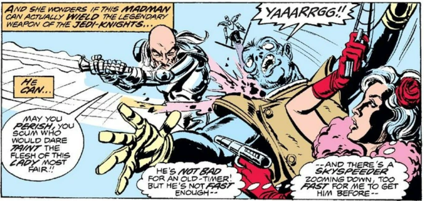 Imagina por un momento la situación de Marvel en 1977: habían conseguido los derechos para adaptar Star Wars, pero, tras los 6 números donde contaban la película otra vez, se les abrió una disyuntiva: ¿Debían seguir por su cuenta o esperar pacientemente a que llegara El imperio contraataca? La respuesta es obvia: la serie duró hasta 1986, con 107 números regulares y 3 anuales, y funcionó tan bien que fue lo que salvó a Marvel de hundirse en un periodo donde los superhéroes habían dejado de funcionar. El problema es que a partir de la adaptación se tomaron libertades. Demasiadas libertades, voto a bríos.