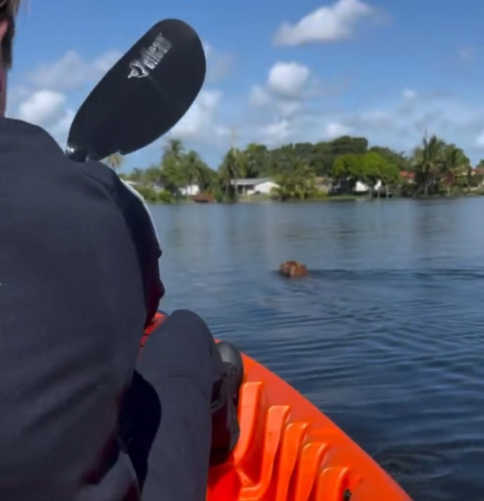 Los oficiales de Pembroke Pines llegaron rápido al lugar, dejaron a un lado parte del equipo y usaron el kayak de un residente para alcanzar al perro. Esta maniobra les permitió guiarlo hasta la orilla, donde finalmente lo aseguraron con una cuerda y lograron ponerlo a salvo.